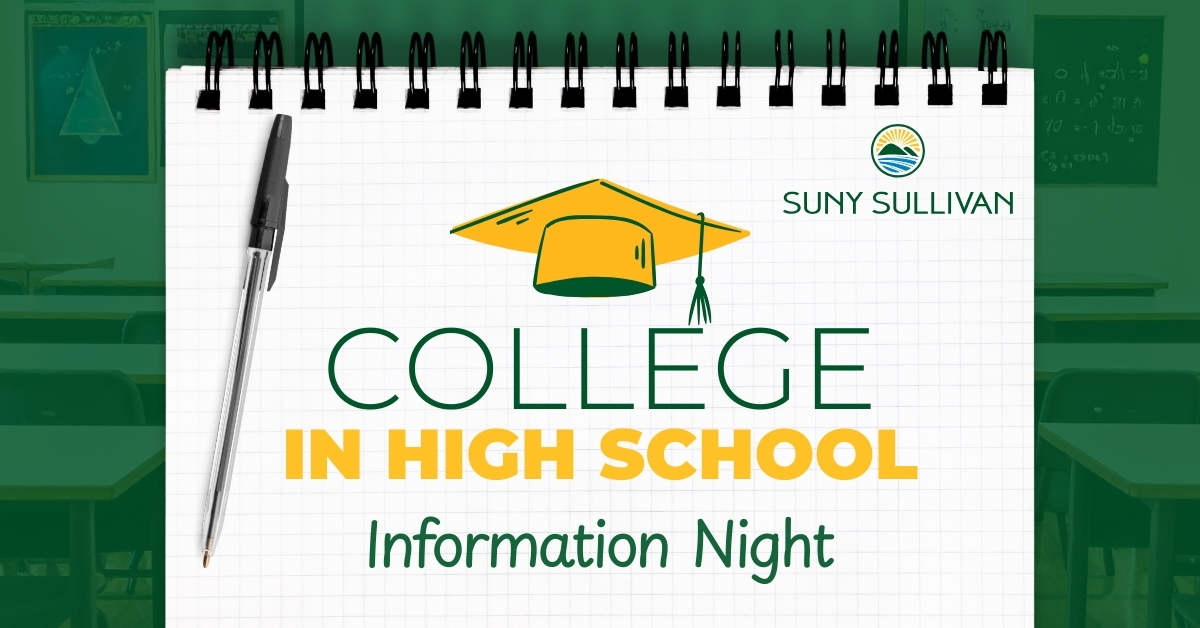Get ahead, save money, and build confidence—all before high school graduation. Are you ready to turn your high school years into a head start for your career? Join SUNY Sullivan for our College in High School (CIHS) Information Night. This event is designed for students in grades 8–12 and their families to discover how easy […]