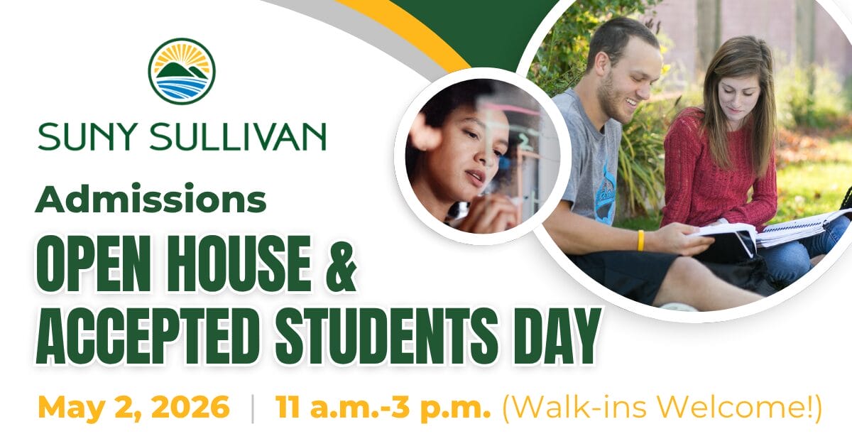 YOUR NEXT CAREER STARTS HERE! Join us for the SUNY Sullivan Career & Job Fair on Wednesday, April 8 from 10 a.m. to 1 p.m. in the E Lobby and connect with over 40 regional employers and organizations that are eager to meet talented, motivated job seekers like YOU! Employers include: NYS Dept. of Parks […]